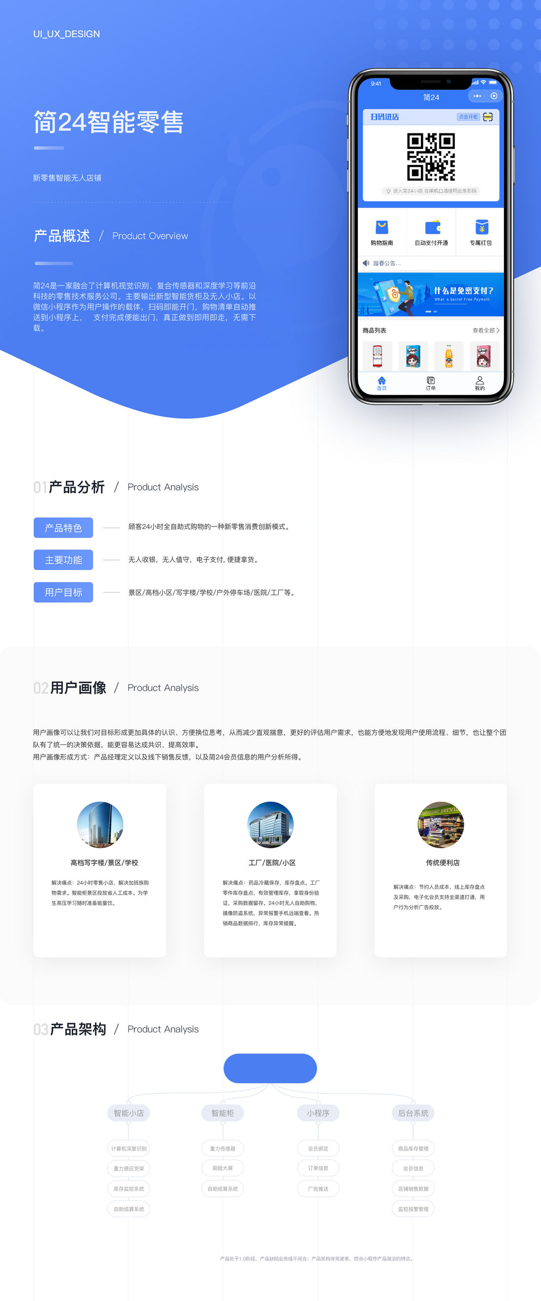 简24是一家做智能零售的公司,通过线上WeChat小程序绑定用户身份信息,及开通WeChat和支付宝免密支付,来实现线下店铺和柜子的自助购物线上自动结账推送订单功能。